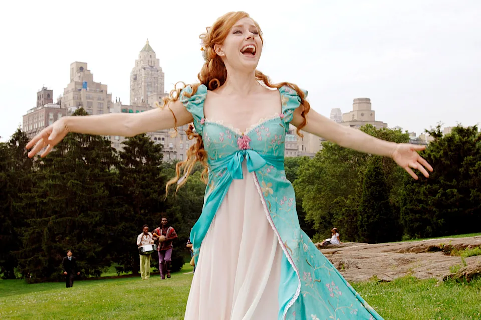 В 2007 году компания Disney решила посмеяться над собственными штампами – так появилась «Зачарованная» режиссера Кевина Лимы. Формула проста до цинизма: принцесса Жизель (Эми Адамс) поет с птичками и бурундуками в рисованном сказочном королевстве, а злая королева-мачеха (Сьюзен Сарандон) толкает её в колодец, который оказывается порталом в Нью-Йорк 21 века. Принцесса оказывается на Таймс-сквер в свадебном платье, ищет принца, а вместо этого находит адвоката Роберта (Патрик Демпси), который не верит в сказки. Он начинает подрывать все диснеевские клише изнутри.